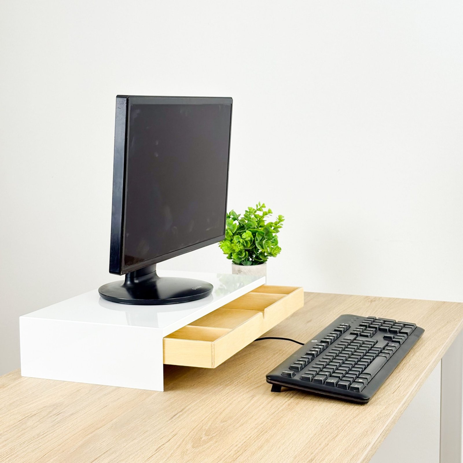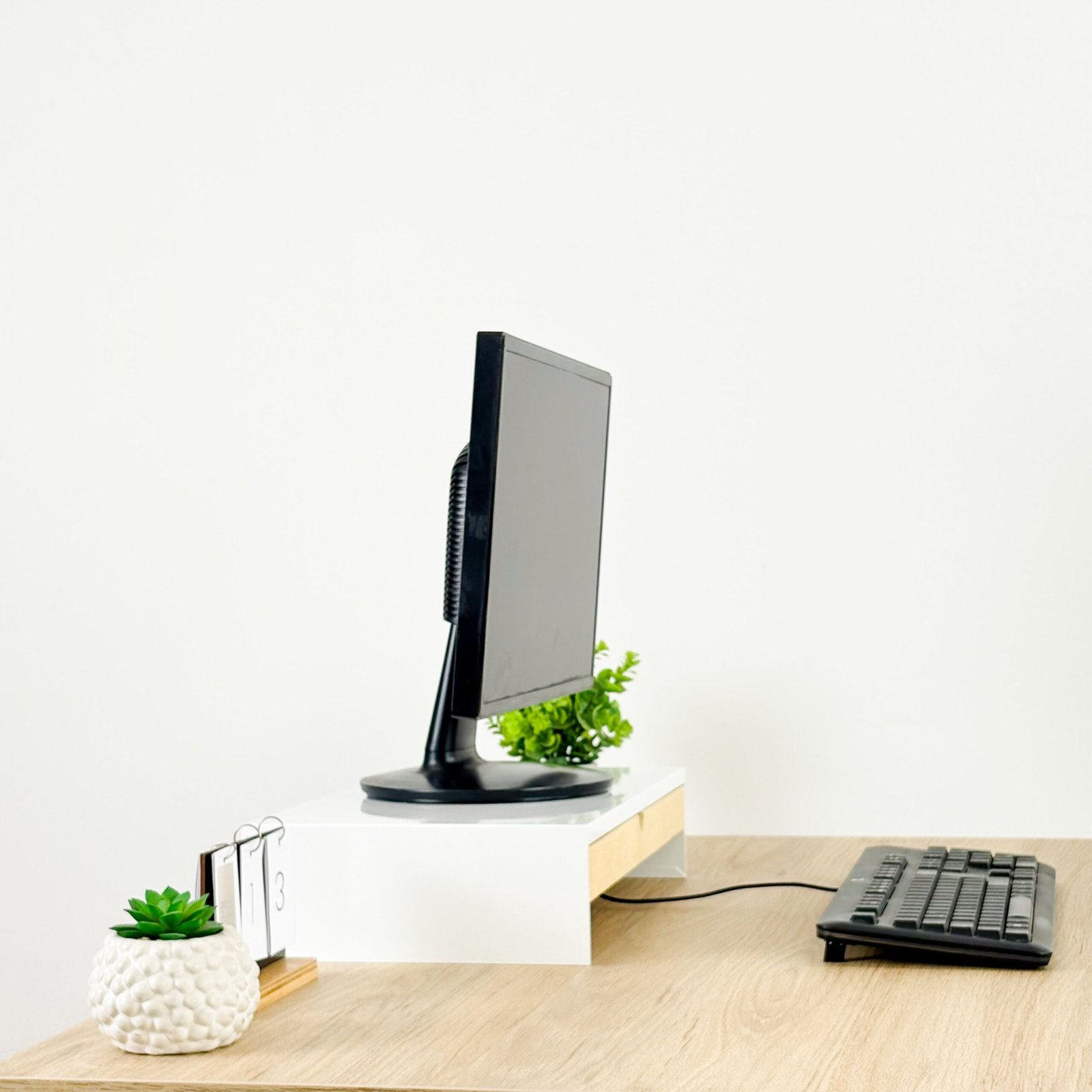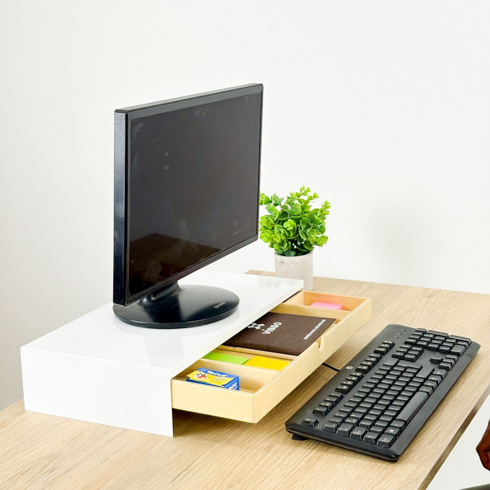 Este soporte para monitor con almacenaje es perfecto para trabajar, estudiar y crear, y te ayuda a mantener el escritorio en orden.