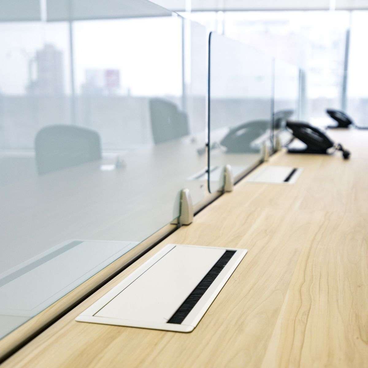 ❖ 01 tapa abatible frenada color aluminio por puesto de trabajo.