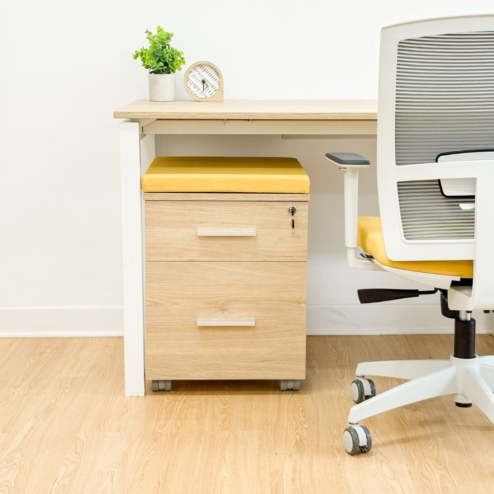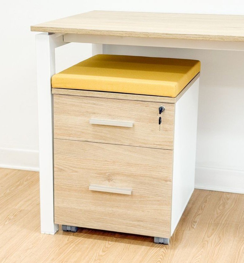 01 cajón estándar y 01 cajón grande donde podrás colocar files, ambos con correderas de total extracción y que soportan 32 kg de peso por cajón.Son una practica solución para el archivo personal. Diseñados para un uso intensivo y profesional. Combinan perfectamente con todos los escritorios VISSO.