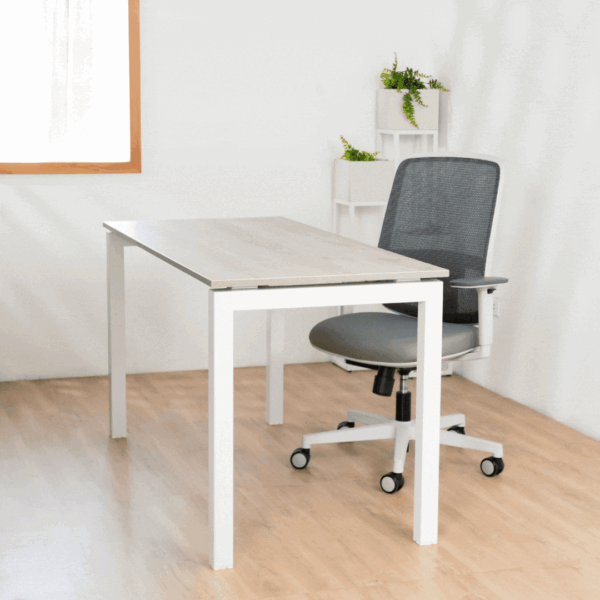 Quadra es una línea de escritorios ideal para ambientes minimalistas y contemporáneos, con su estructura de patas rectas y tamaños adaptables a todo entorno.