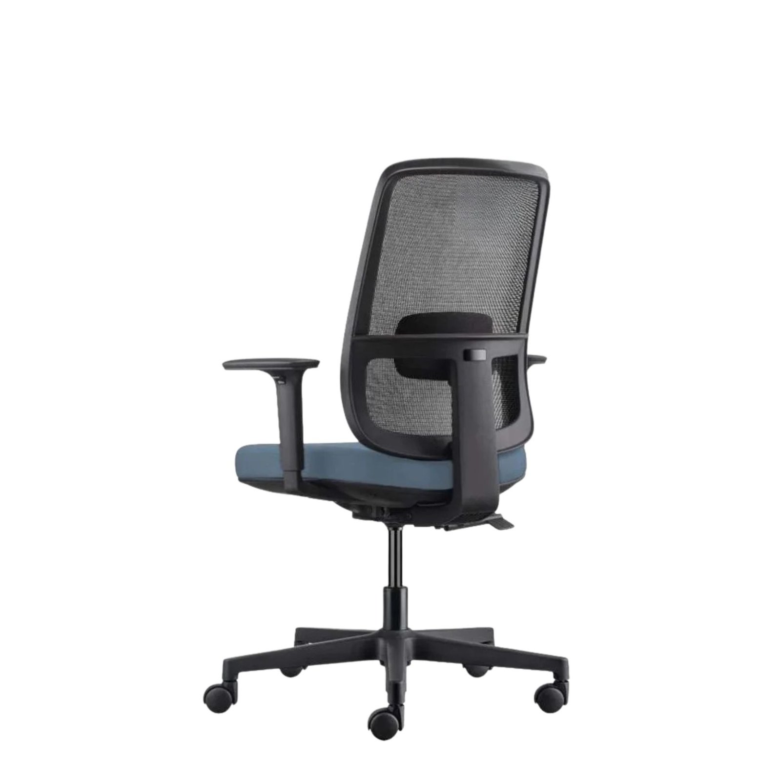 → Respaldo tapizado en malla negra de poliéster transpirable y resistente.