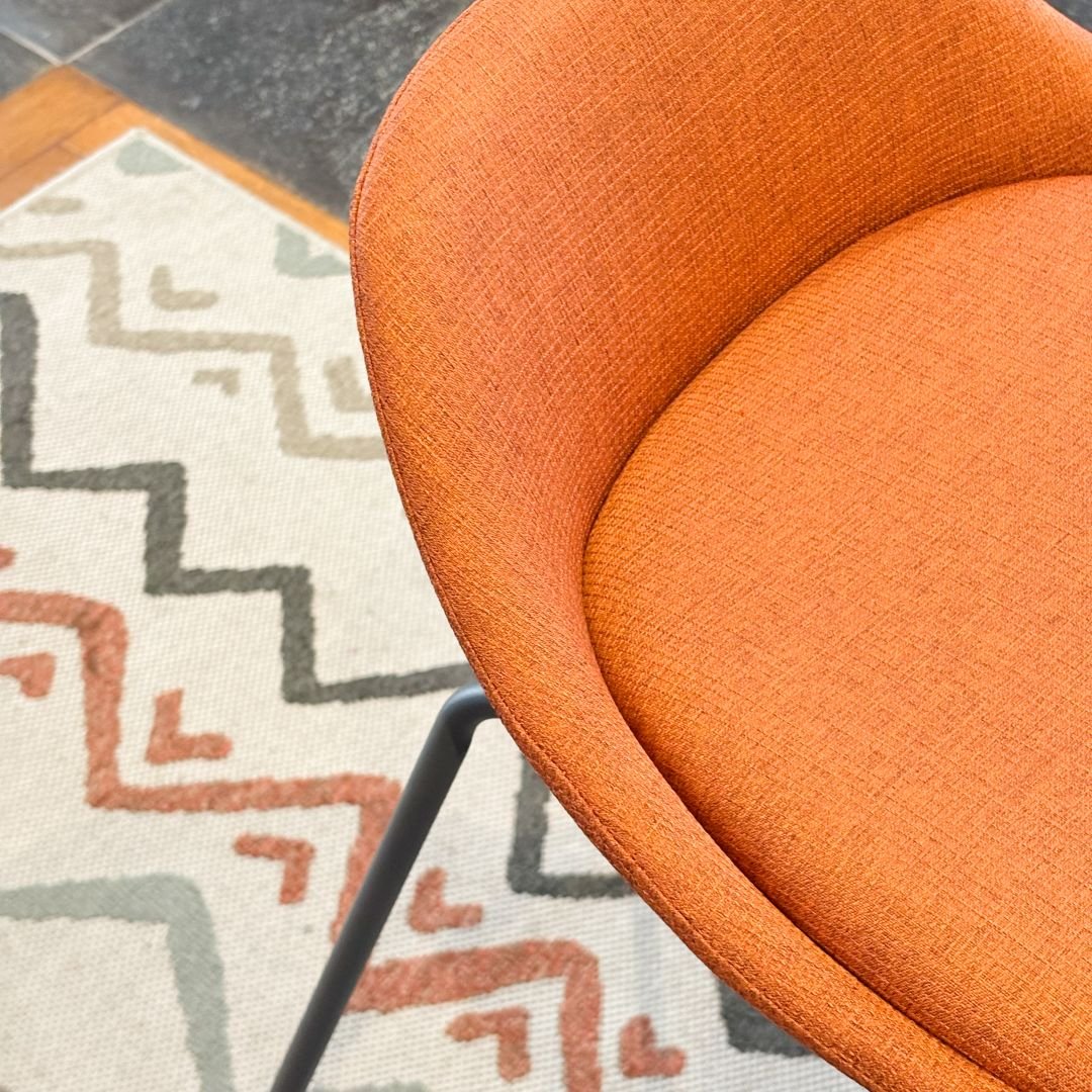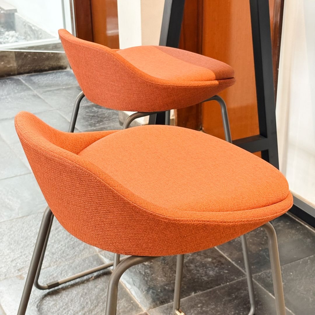 La estructura simple y compacta de la silla Alta permite una gran variedad de combinaciones. Ya sea en casa o en otros ambientes, puede enriquecer el espacio gracias a sus acabados sofisticados en tela brescia.