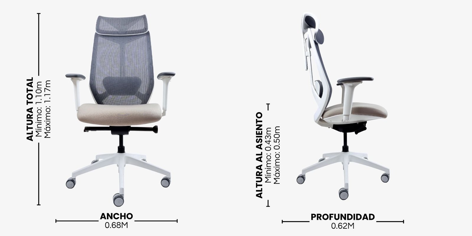 El soporte lumbar es ajustable en altura, brindando una base firme justo donde tu columna lo necesita. Así, disminuye el cansancio y previene dolores crónicos