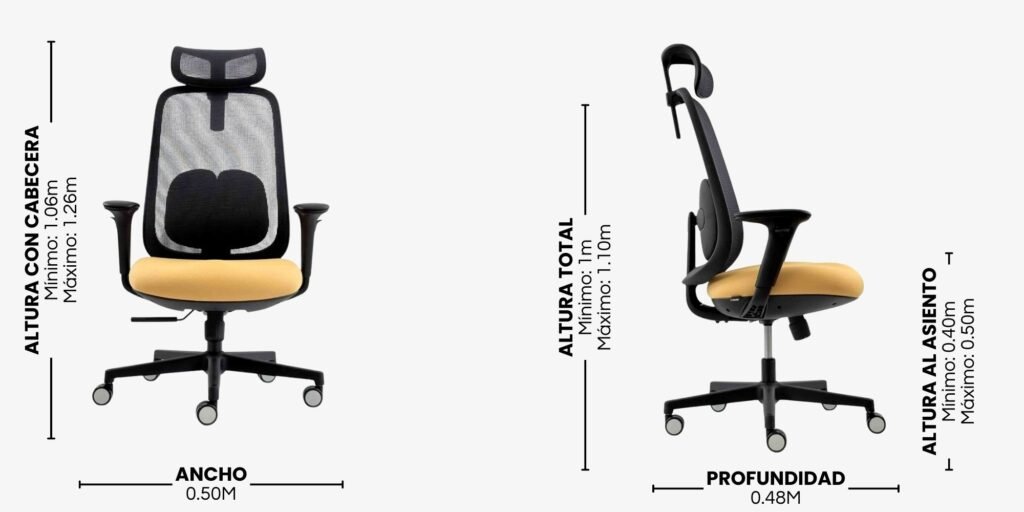 La altura del asiento se regula, permitiendo que tus pies se apoyen firmemente en el suelo. Esto reduce molestias lumbares y promueve una mejor circulación