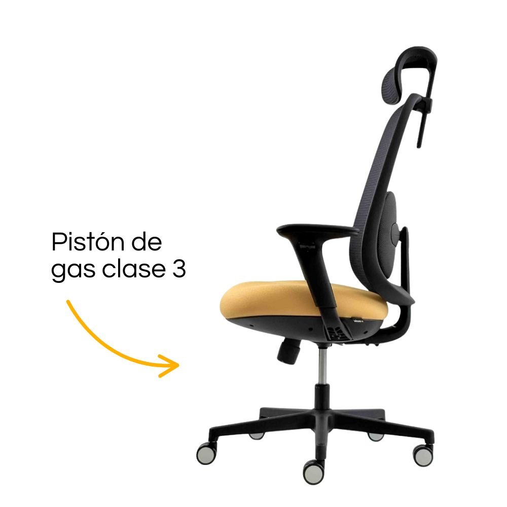 El pistón de la silla Twinkle resiste hasta 110 kg y favorece una regulación precisa. En comparación de las sillas tradicionales, sobresale por su rendimiento duradero y estabilidad